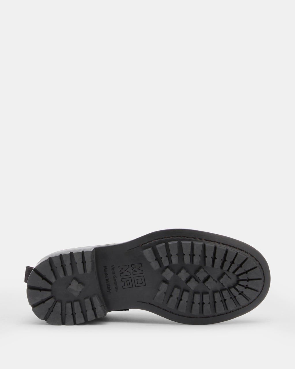 Stringata donna in pelle "effetto heritage" di Moma. Modello con punta tonda e suola in gomma.80402A-BEL