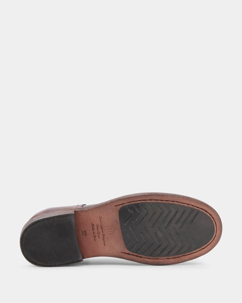 Stringata donna in pelle "effetto heritage" di Moma. Modello con punta tonda e suola in cuoio con inserto antiscivolo in gomma. 75503A-VIV.
