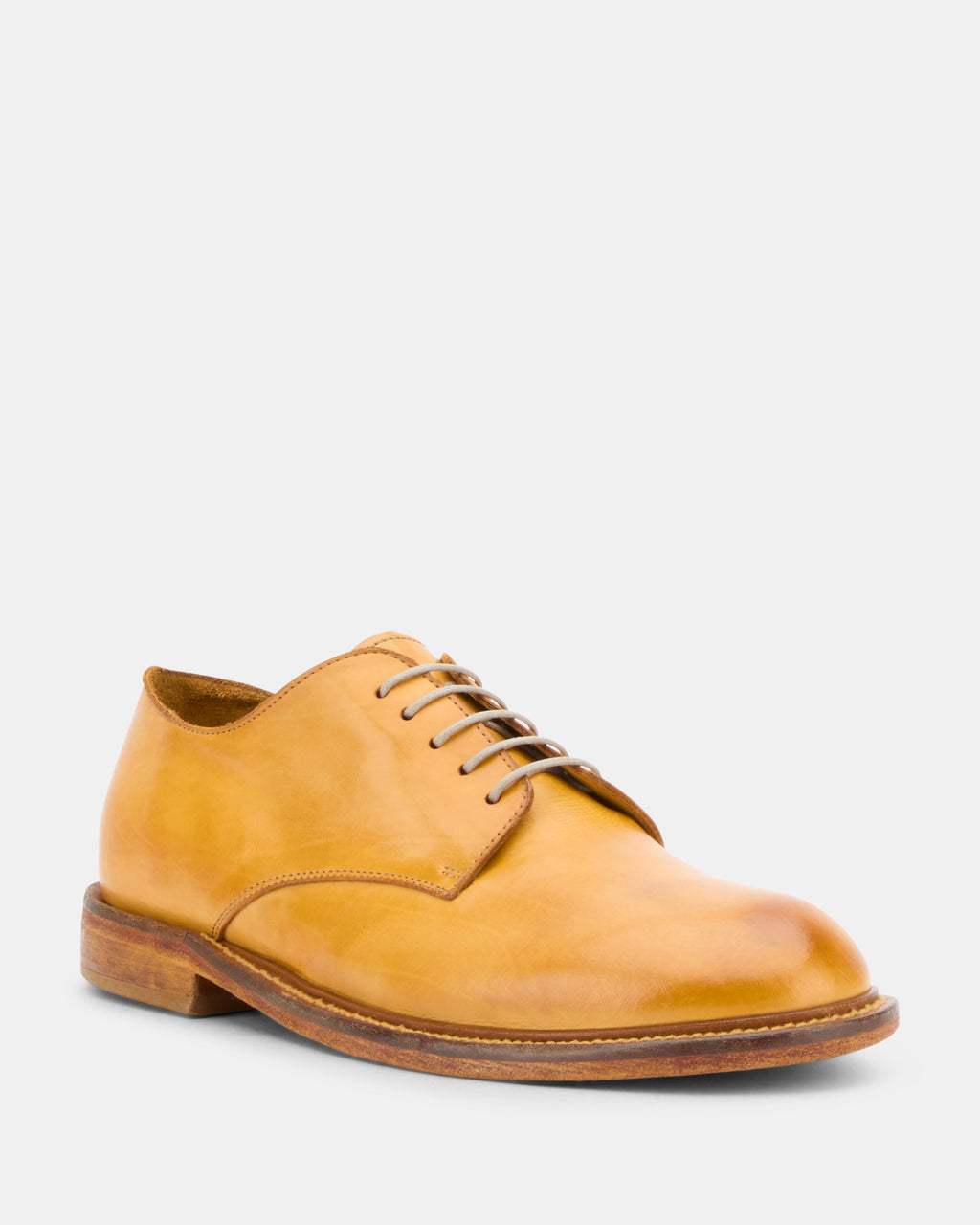 Stringata in pelle "effetto heritage" di MOMA. Modello con punta tonda e suola in cuoio con inserto antiscivolo in gomma. 22602A-VIV