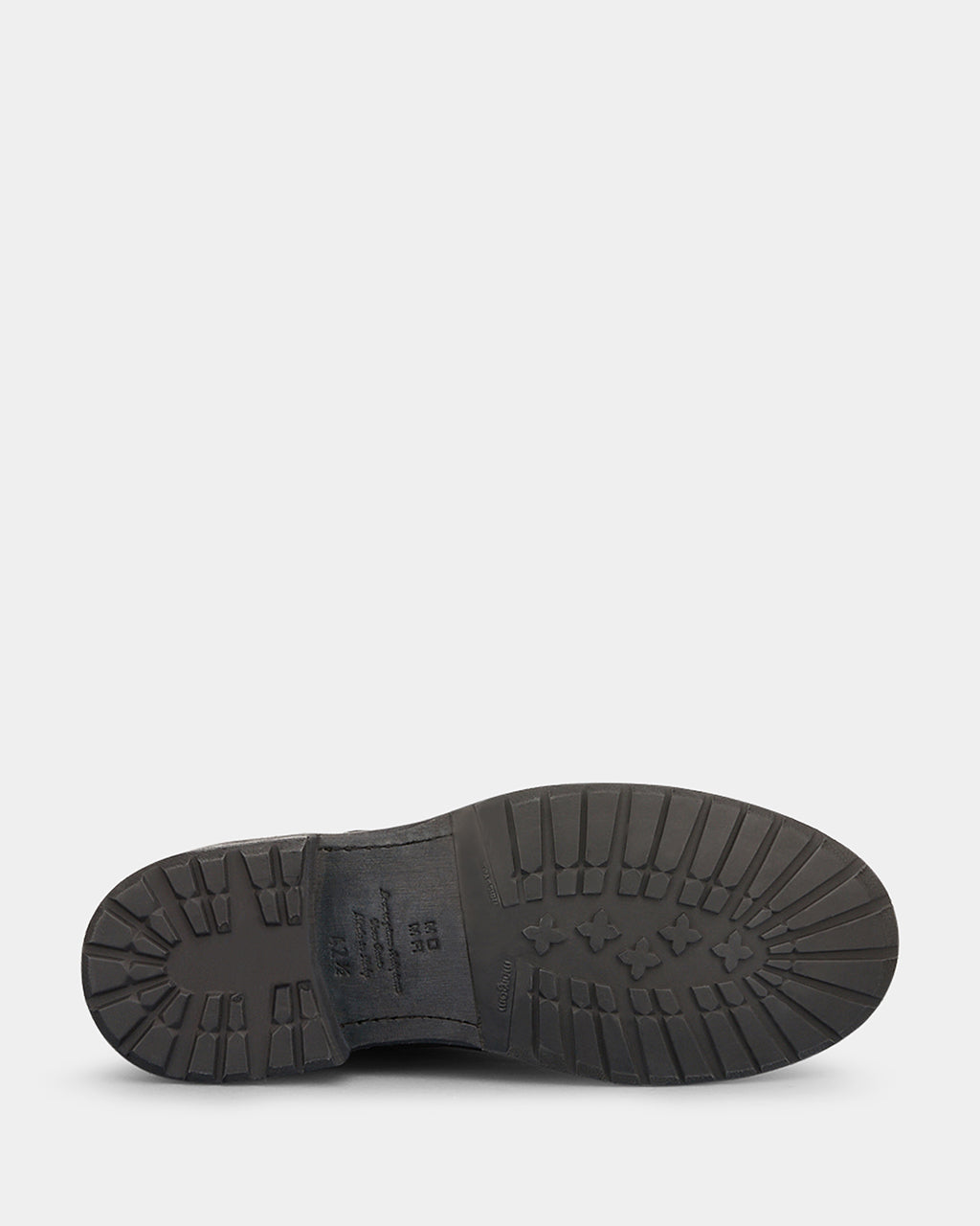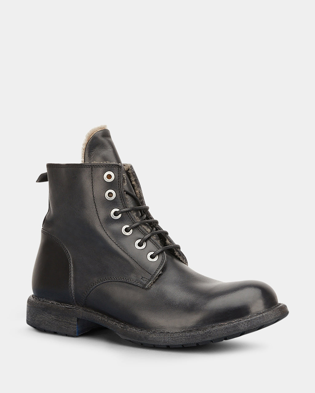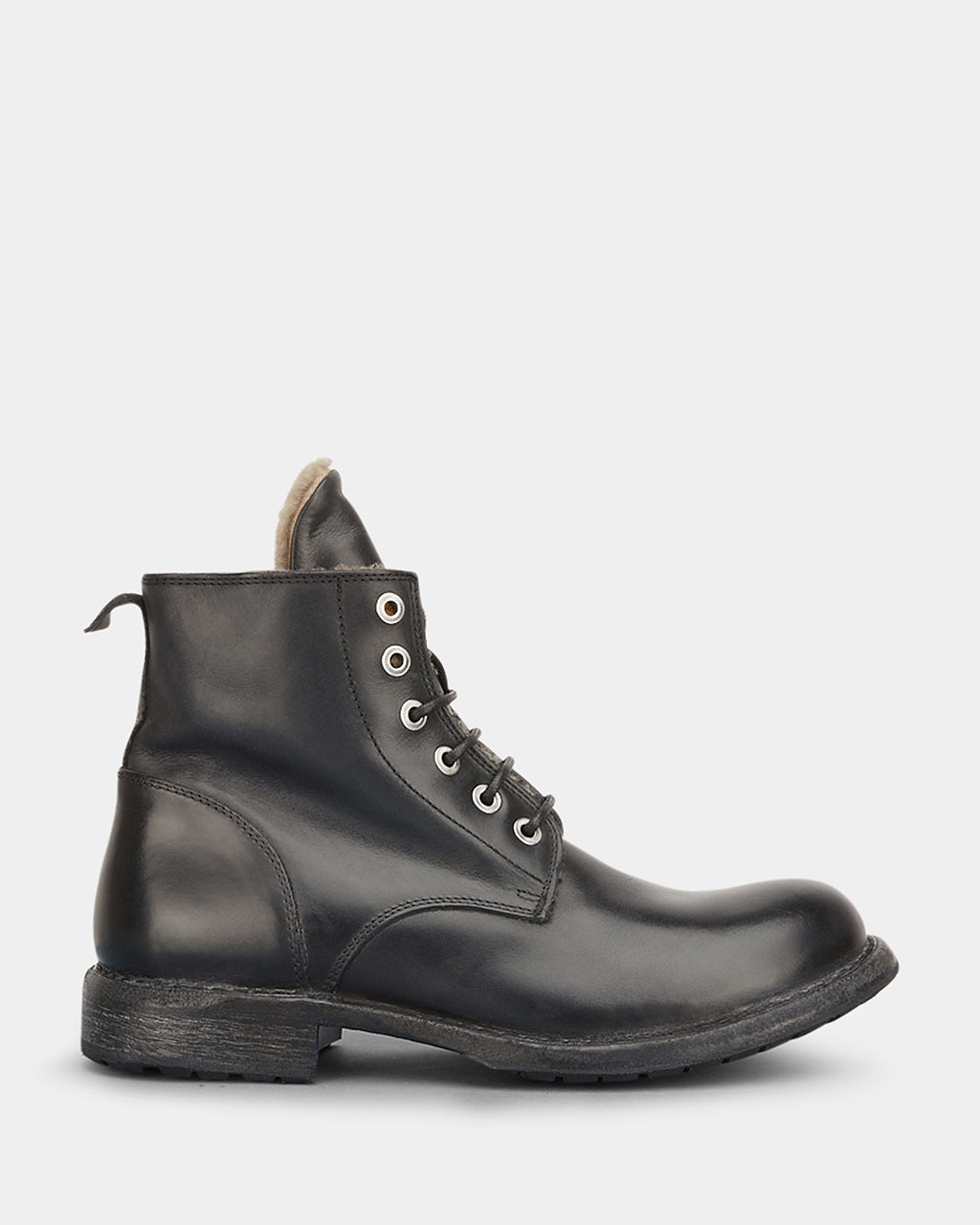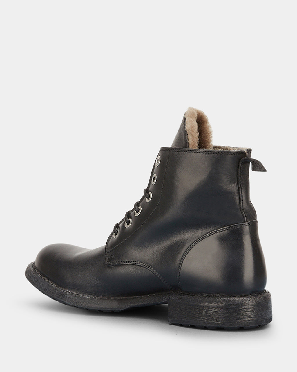 Tronchetti MOMA in pelle "effetto vintage". Modello con punta tonda, fodera in montone e suola in cuoio con inserto antiscivolo in gomma. 2CW007-CEM.