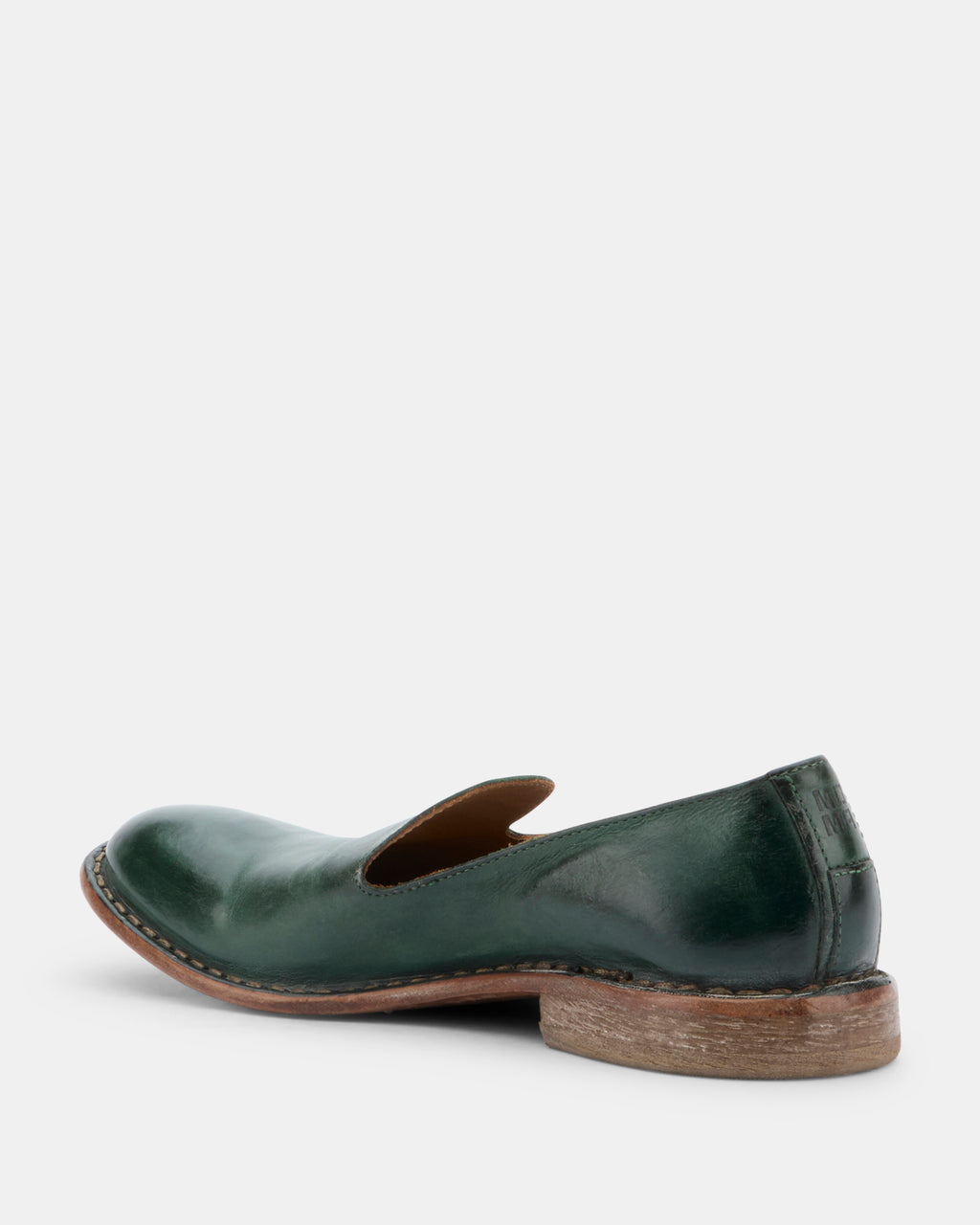 Pantofola donna in pelle "effetto vintage" di MOMA. Modello con punta tonda e suola in cuoio con inserto antiscivolo in gomma. 35501F-GA.