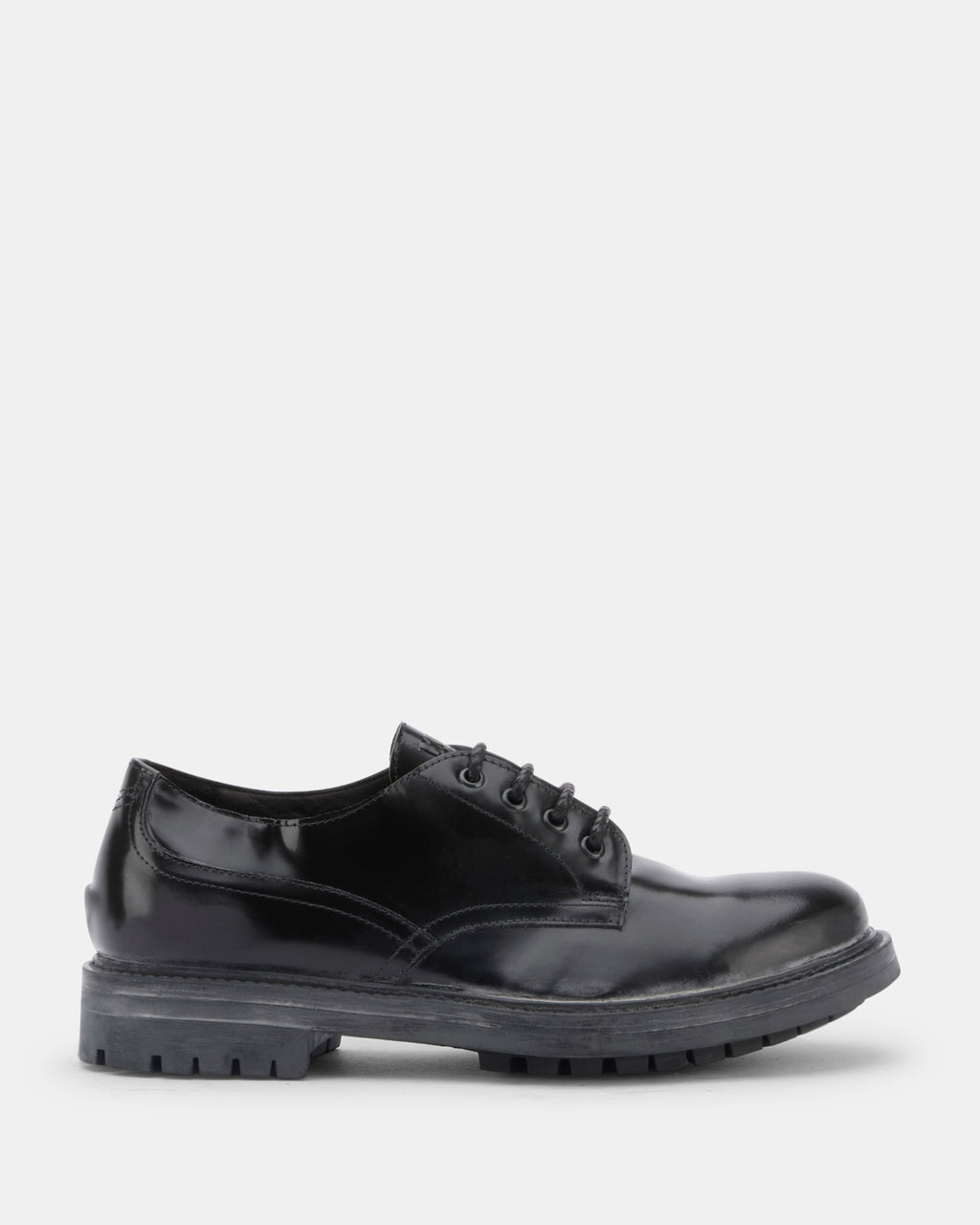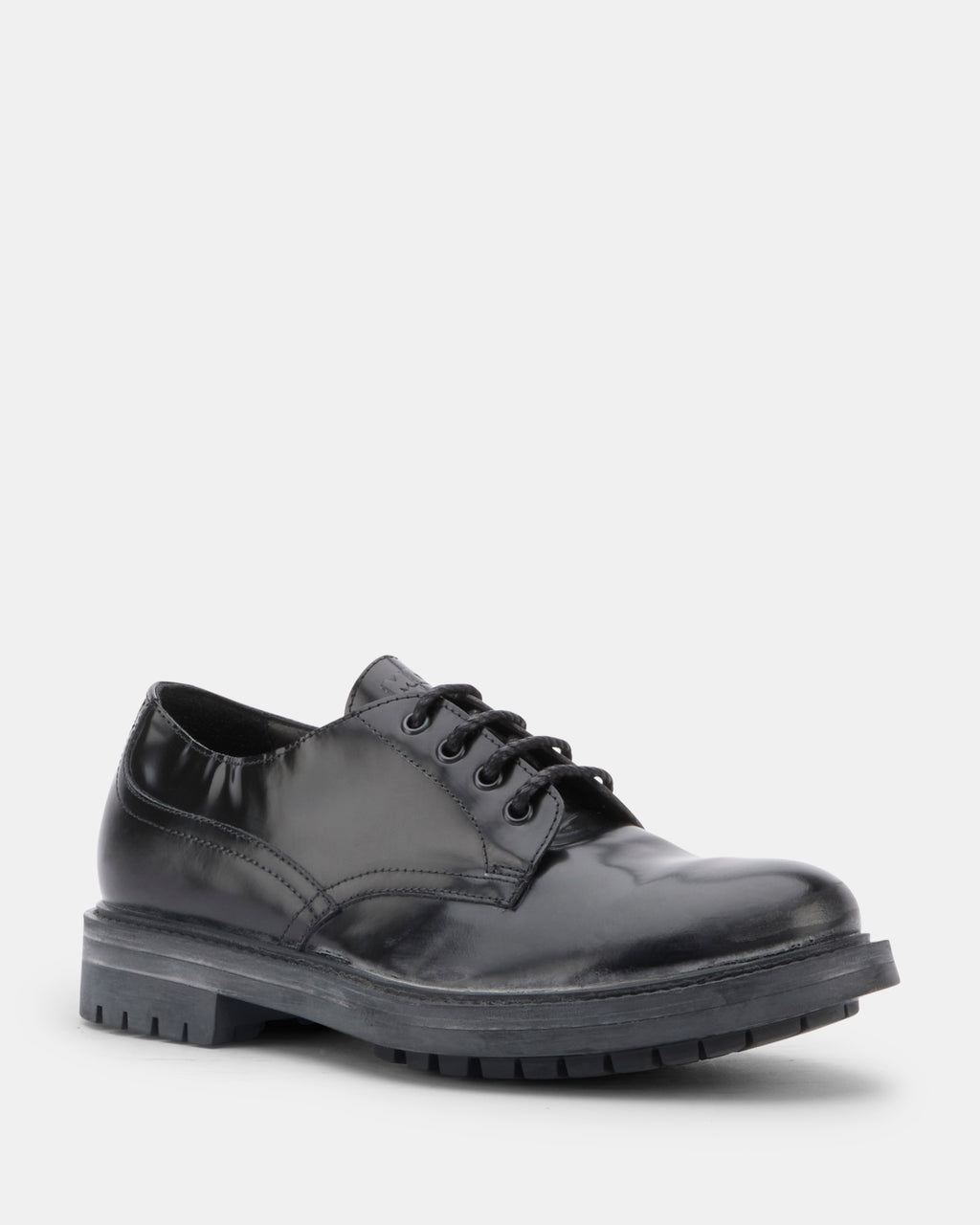 Stringata in pelle abrasivata di MOMA. Modello con punta tonda e suola in gomma. 57401A-ENE