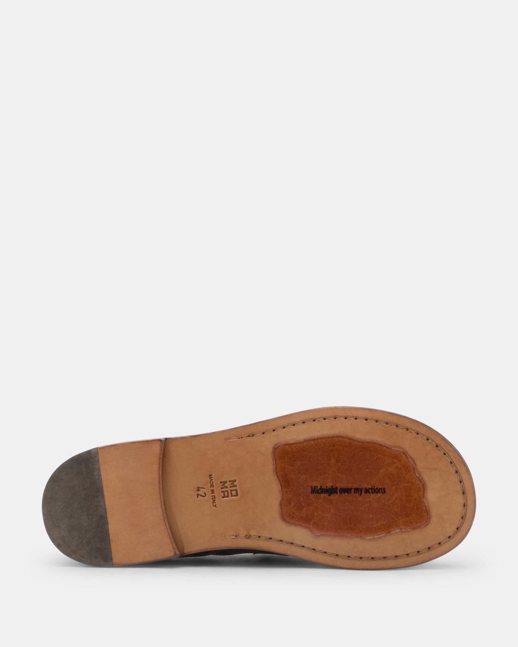 Mocassino uomo in pelle "effetto vintage" di MOMA. Modello IDEAL BLOCK con punta tonda e suola in cuoio con inserto antiscivolo in gomma. 15502E-GA
