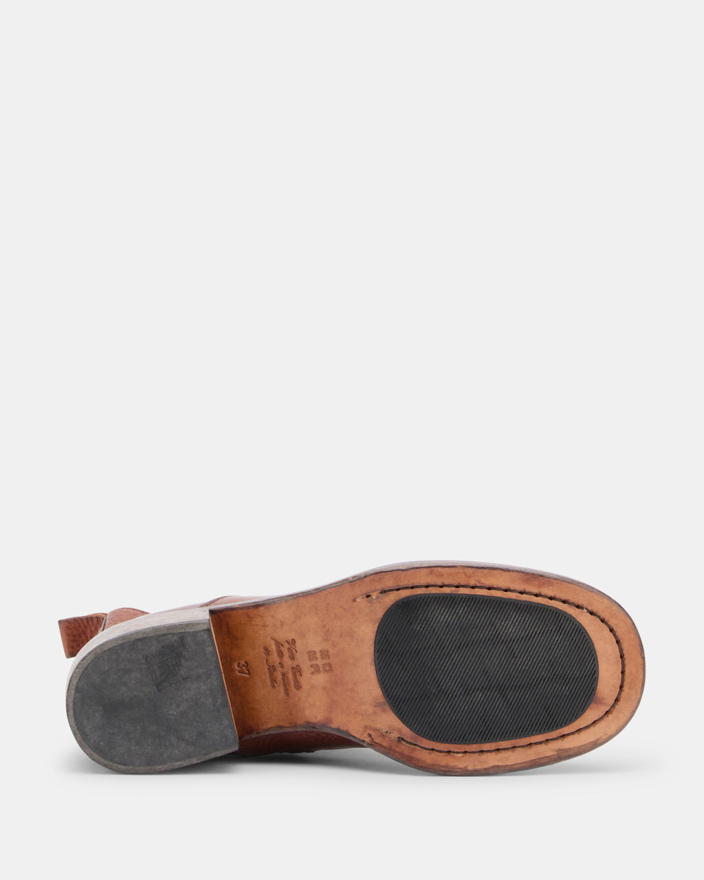 Tronchetto donna in pelle "effetto heritage" di Moma. Modello con punta tonda e suola in cuoio con inserto antiscivolo in gomma. 73501C-ARR
