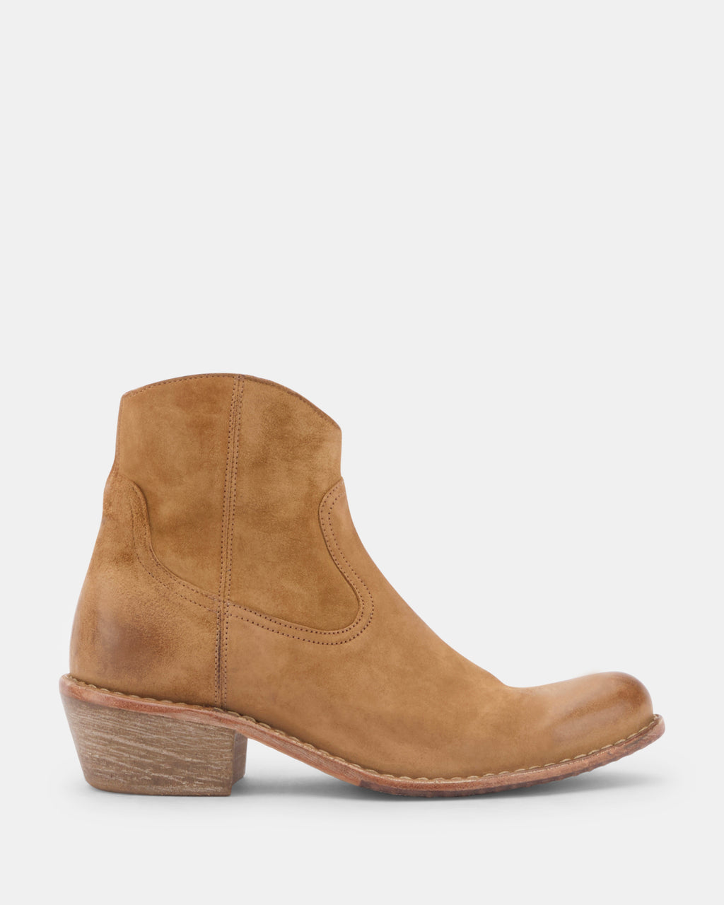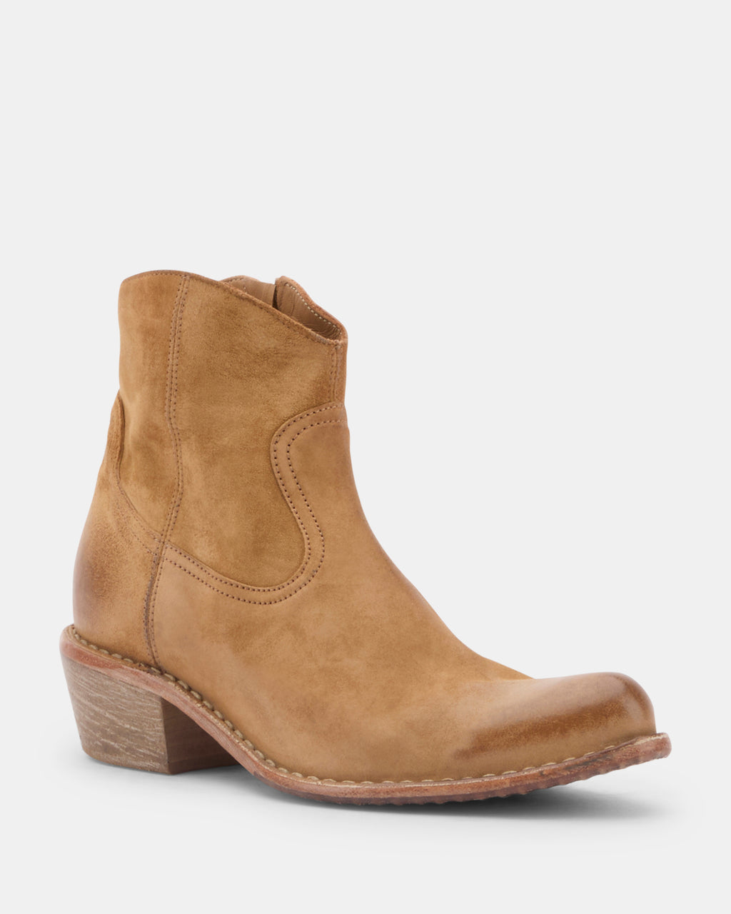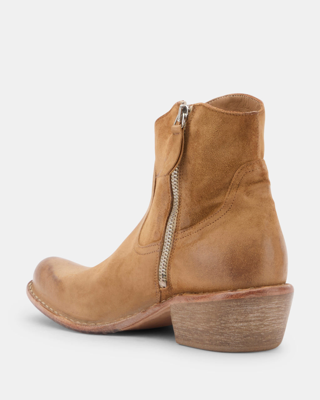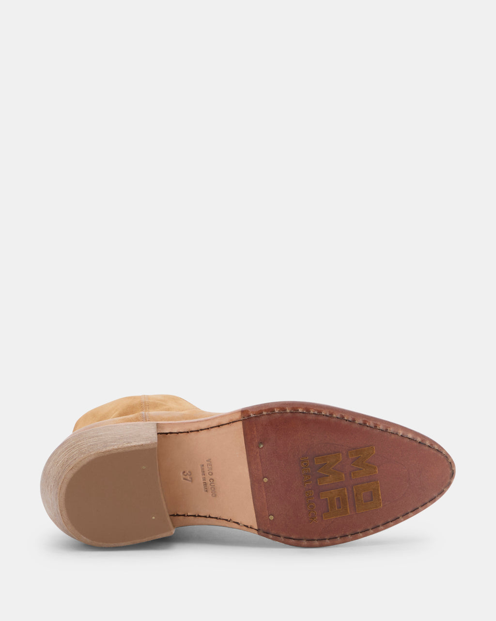 Tronchetto in pelle "effetto vintage" di MOMA. Modello con punta texana e suola in cuoio con inserto antiscivolo in gomma. 39501C-OW