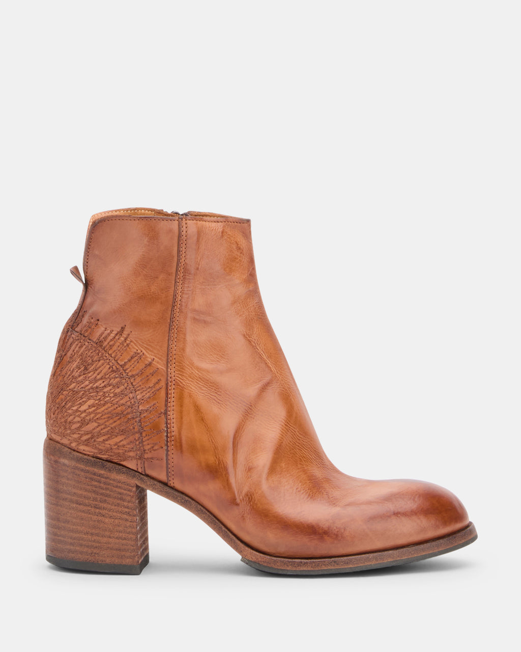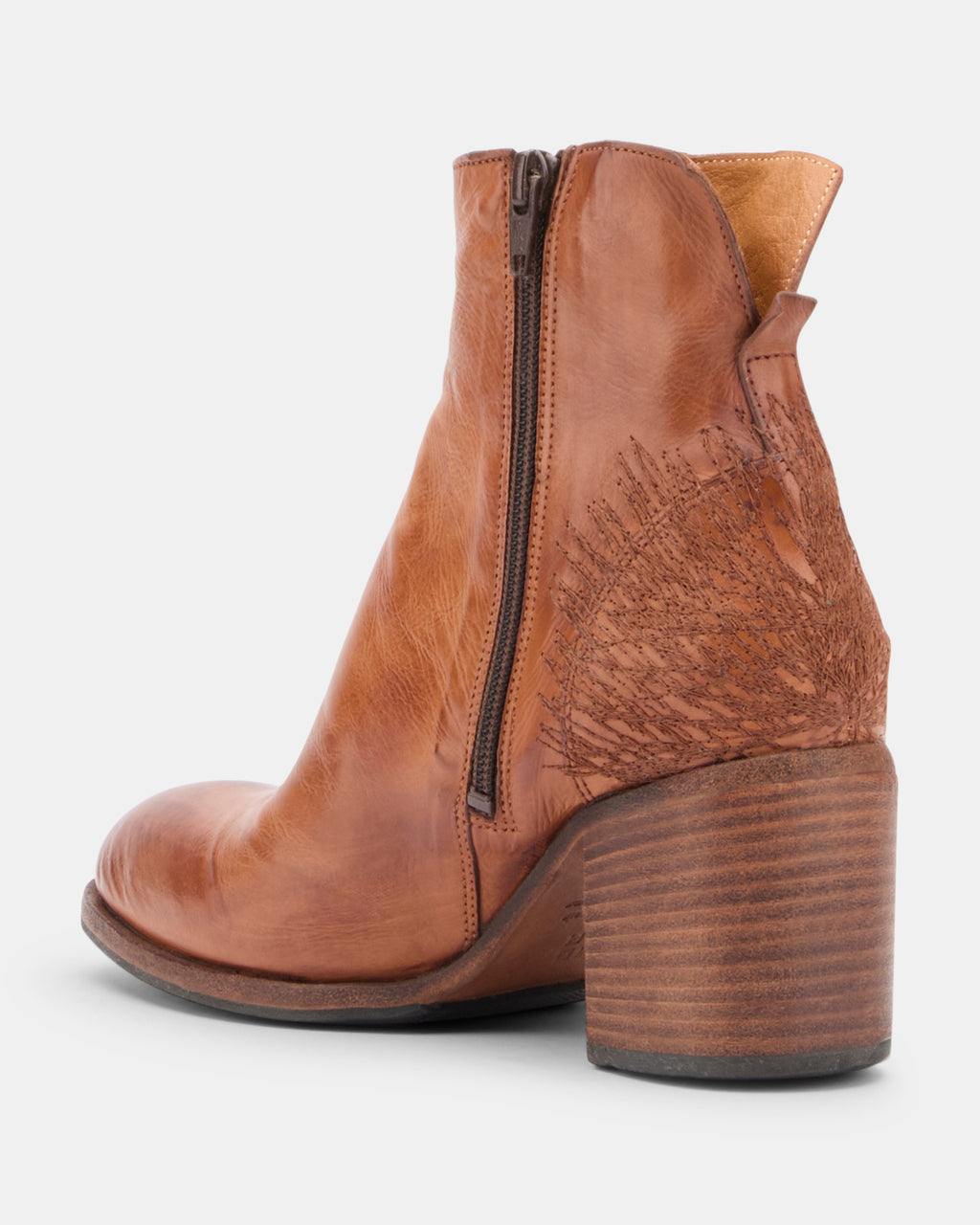 Tronchetto donna in pelle "effetto heritage" di Moma. Modello con punta tonda e suola in cuoio con inserto antiscivolo in gomma.89504C-VIV