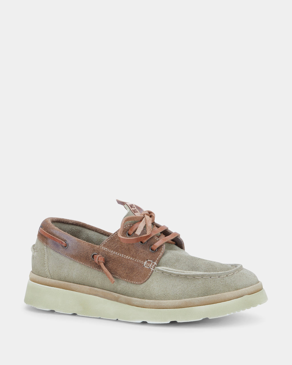 Stringata uomo in pelle "effetto vintage" MOMA. Modello con punta tonda, suola in gomma. 13401A-GRGR.